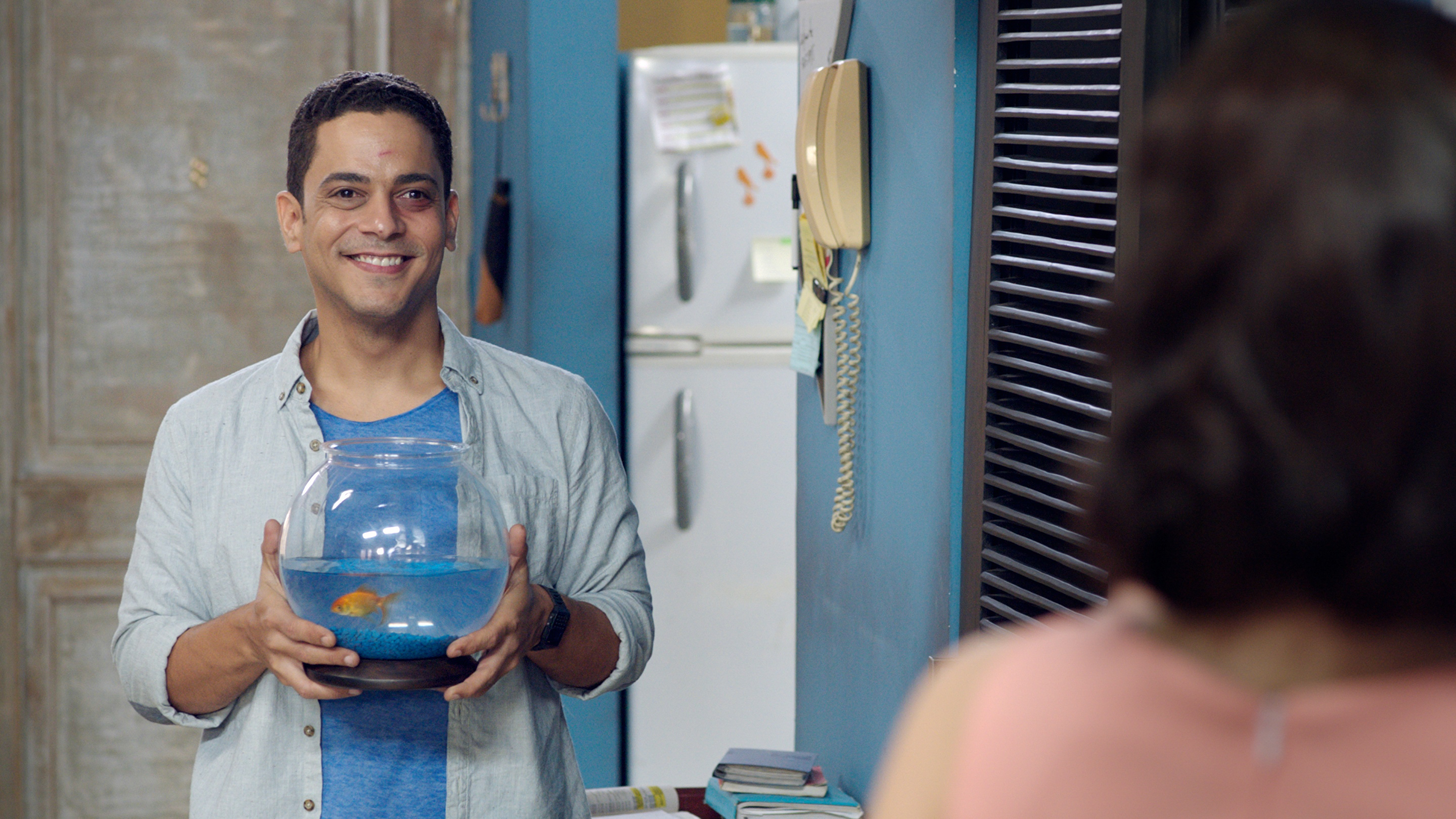 Quería hacer una película que lidiara con la felicidad y la falta de ella en casos donde no hay porque estar infeliz… Quería que el agua y su color azul sirvieran para mostrar simbólicamente el ahogamiento del personaje a la misma vez que como elemento depurante, porque el agua, dependiendo en la medida, te puede ahogar o limpiar y dar vida. Así como quería el color azul, quería un toque de color naranja, que contrasta con el color azul y representa lo opuesto al estado de ánimo del personaje. Así que la decisión del personaje del pez, surge más de una decisión de color que otra cosa… En cuanto a por qué la dirigí yo, la había escrito hace un tiempo para dirigirla, pero no se dió. Luego se la había ofrecido a un amigo para que la dirigiera, pues yo estaba muy ocupado con otras cosas. Al final me desocupé y decidí hacerla. Realmente a mí lo que más me gusta es dirigir, y escribir es un pretexto para hacerlo, pero no siempre se puede hacer todo. Hacer cine es muy colaborativo y en industrias pequeñas como la nuestra, a veces hay que coger turno para que te toque hacer lo que realmente quieres hacer. La ley de cine ha acelerado ese proceso para muchos.